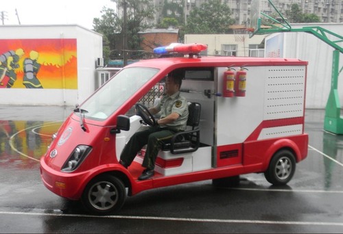 當前位置:首頁 > 新聞中心 > 公司新聞 > “迷你”消防車 一身硬功夫 6月1日,一輛“迷你”電動消防車開進了武漢市武昌區(qū)消防大隊營區(qū)。這輛“迷你”消防車車長不過3米,車高不足2米,能在社區(qū)巷道靈活穿行。目前是全國最小的消防車?!懊阅恪毕儡嚿聿碾m小,但有一身硬功夫,車上裝有高壓水槍、汽油機消防泵、容水800公斤水罐,口徑65mm卡扣式消火栓接口可從市政消火栓取水。車上還配有干粉滅火器、水帶、水槍、消火栓扳手、鐵锨、鐵錘、板斧、絕緣鉗、手電筒、擴音器、防毒面具等消防器材。